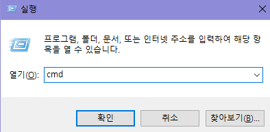 Window + r키를 눌러 실행창을 열고 cmd를 열어보자