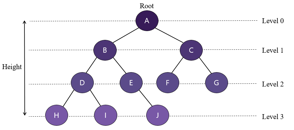- ์ต์์ ๋ ธ๋(๋ฃจํธ)๊ฐ ์๊ณ ์ต์์ ๋ ธ๋ ์๋์ ๋ค๋ฅธ ํ์ ๋ ธ๋๊ฐ ์๊ณ ๊ทธ ํ์ ๋ ธ๋ ์์๋ ๋ ๋ค๋ฅธ ํ์ ๋ ธ๋๊ฐ ์๋ ๋ถ๋ชจ(parent)์ ์์(child) ํํ์ด๋ค.