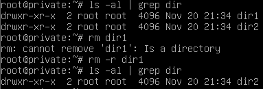 - 디렉터리를 제거할 때는 rm뒤에 -r 옵션을 붙여주어야 삭제가 가능하다.
