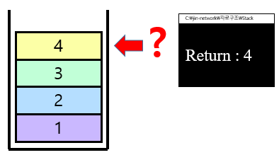 스택의 가장 위에 있는 항목을 반환한다. (이번에 꺼낼 값이 뭔지 확인한다)