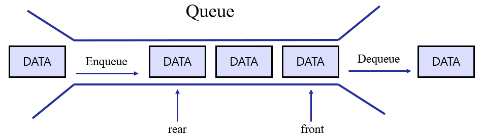 먼저 줄을 선 사람이 먼저 놀이기구를 탈 수 있는 것처럼 선입선출(First-In First-Out, FIFO) 구조로 가장 먼저 들어온 데이터가 가장 먼저 리턴, 출력된다는 뜻이다.