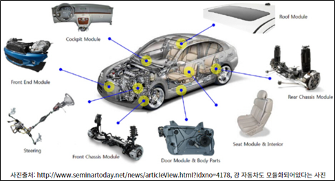 - 자동차를 샀다! 근데 자동차가 고장이 나면 자동차를 새로 바꾸지 않고 타이어가 고장 났으면 타이어만 바꾸고, 엔진이 고장 났으면 엔진만 교환할 것이다! 이게 어떻게 가능할까? 자동차 회사가 자동차를 전부 만들지는 않는다. 자동차 타이어 회사가 따로 있고, 엔진 만들고, 철판 만드는 회사가 다 따로 있을 것이다. 자동차를 만들기 위해서는 일정 계층별로 하나하나가 다 모듈화 되어 있는 것이다.