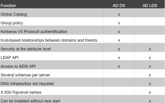 - ADAM(Active Directory Application Mode)이라고 알려진, AD LDS는 몇몇 시나리오에선 AD DS 기능을 대체하는 LDAP 디렉터리 서비스이다.