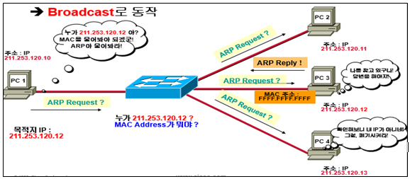 - ARP가 MAC주소를 알아오면 PC의 ARP테이블에 저장한다. (Aging타임 600초)