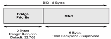 - Bridge ID는 2Byte의 Bridge Priority(우선순위)와 6Byte의 MAC address로 구성. Bridge Priority의 default 값은 32768 이다.