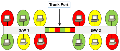 - 다수의 같은 VLAN이 여러 개의 Switch에 존재할 경우 Trunk Port를 통해 각 Switch에 연결된 같은 VLAN에 속한 장비끼리 서로 통신이 가능