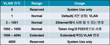- 사용 가능한 VLAN 번호는 1~4094